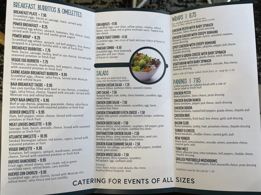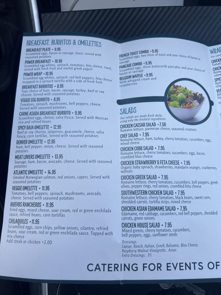 - For a heartier meal, try the Breakfast Plate or Power Wrap from the Breakfast Burritos and Omelettes menu.